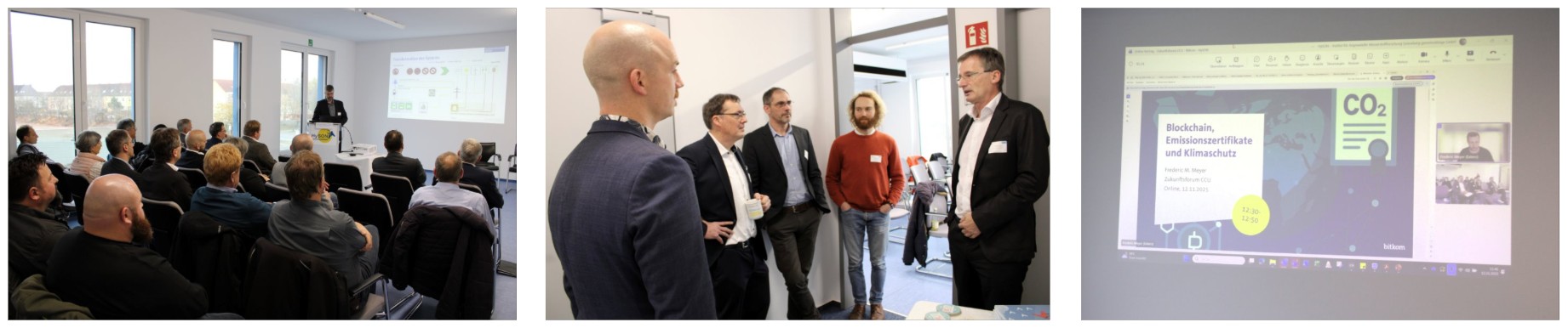 Eingeleitet wurde der Vortragsteil durch h2-well Projektleiter Prof. Dr. Mark Jentsch mit einem Vortrag zu den Herausforderungen der globalen CO2-Emissionen. In weiteren Vorträgen rund um die Zukunftsaussichten von CCU konnten die Teilnehmenden vom aktuellen Rechtsrahmen über die Klimaneutralität am Kalkofen bis hin zu Emissionszertifikaten eine große Bandbreite an fachlichem Input mitnehmen. Einig waren sich die Beteiligten darin, dass die CCU-Technologie einen wichtigen Baustein auf dem Weg zur Dekarbonisierung darstellt, der bisher allerdings zu wenig Beachtung erfährt.
