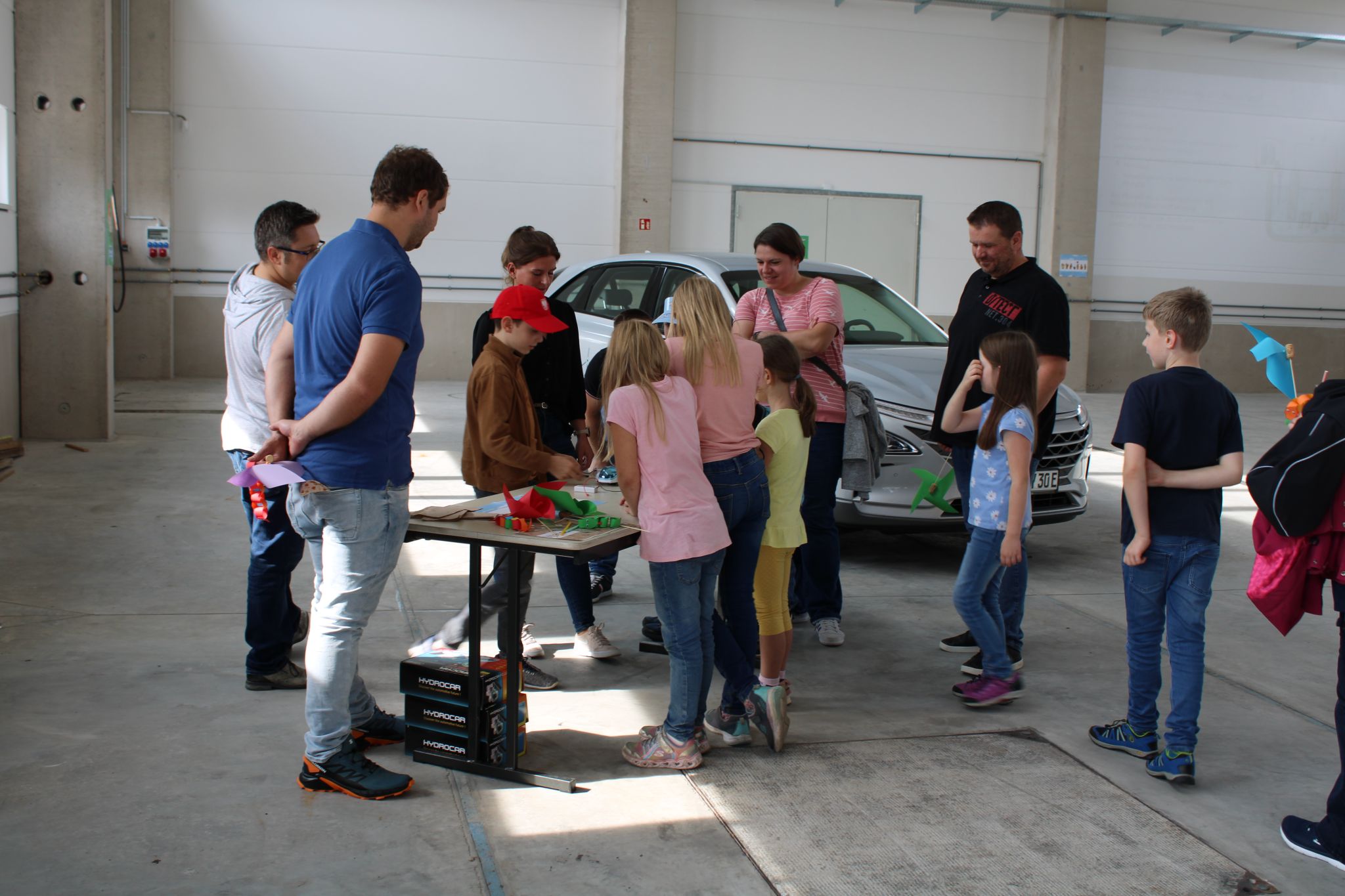 Kinder und Eltern informieren sich über Wasserstoffmobilität (Bildquelle: HySON-Institut)